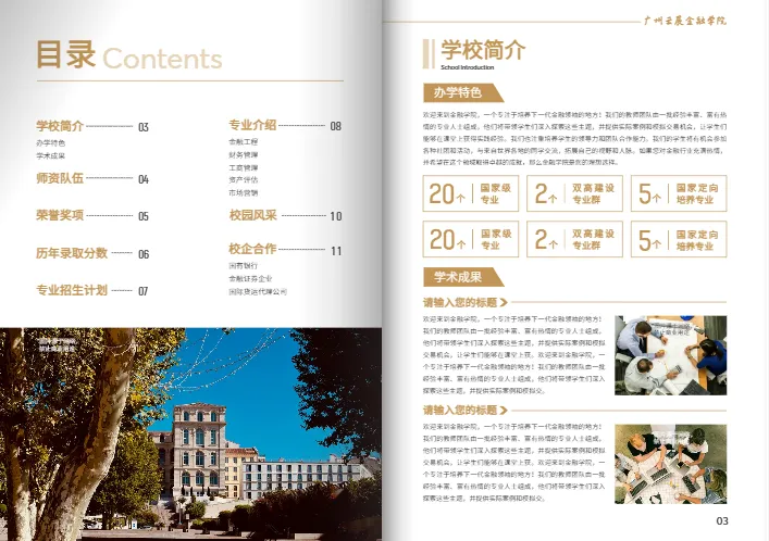 適用場(chǎng)景:綜合性本專科院校、高職院校,做紙質(zhì)版招生手冊(cè)或電子簡(jiǎn)章都適用。