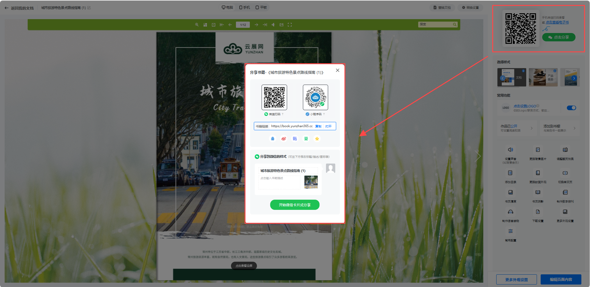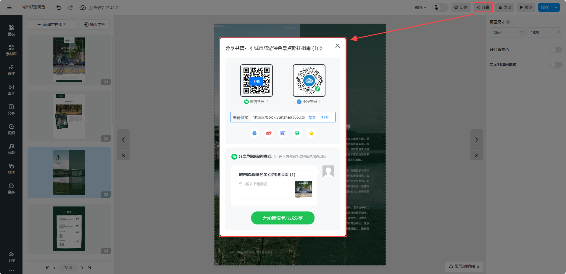 點(diǎn)擊【保存】按鈕,保存后的電子書,可以點(diǎn)擊【分享】發(fā)送到朋友圈或通過鏈接/二維碼分享到微信/QQ好友。