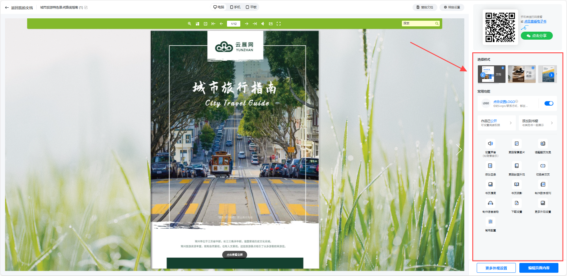 也可點(diǎn)擊【更多外觀設(shè)置】編輯電子書,或【編輯頁(yè)面內(nèi)容】設(shè)置電子書的外觀樣式。