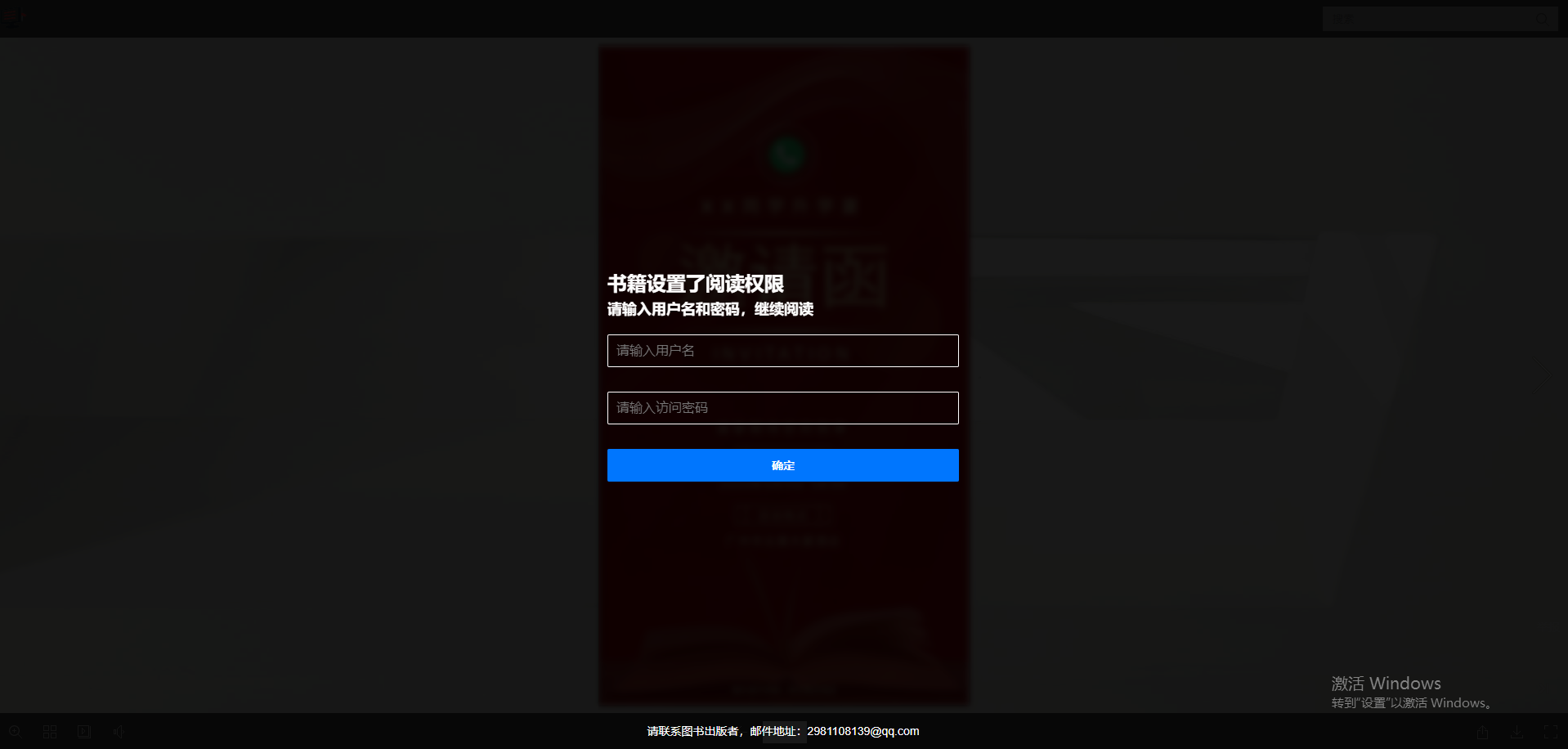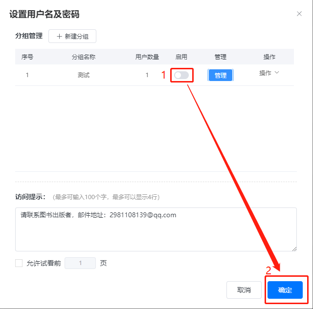 打開(kāi)【啟用】,點(diǎn)擊【確定】,讀者便需要輸入正確的用戶名和密碼才能觀看書(shū)本。