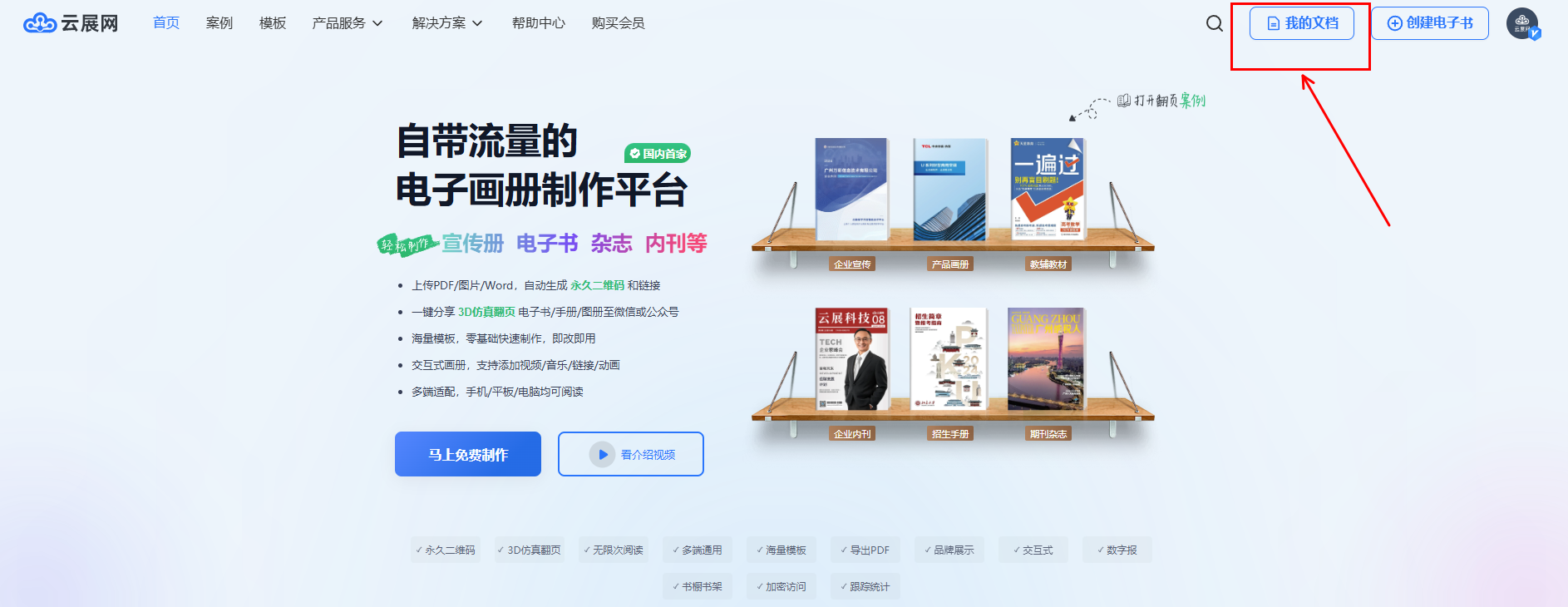 點(diǎn)擊右上角【我的文檔】進(jìn)入界面。