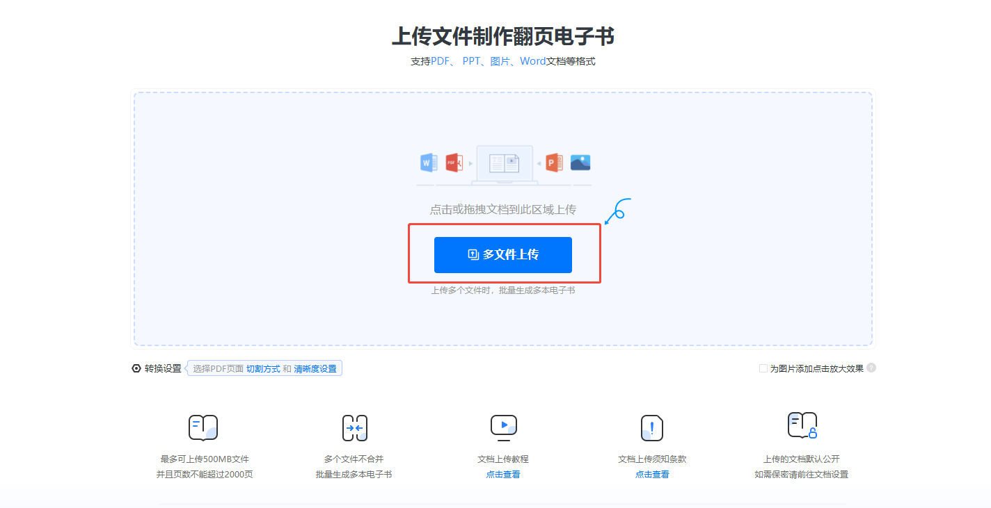 點(diǎn)擊【多文件上傳】上傳文件。