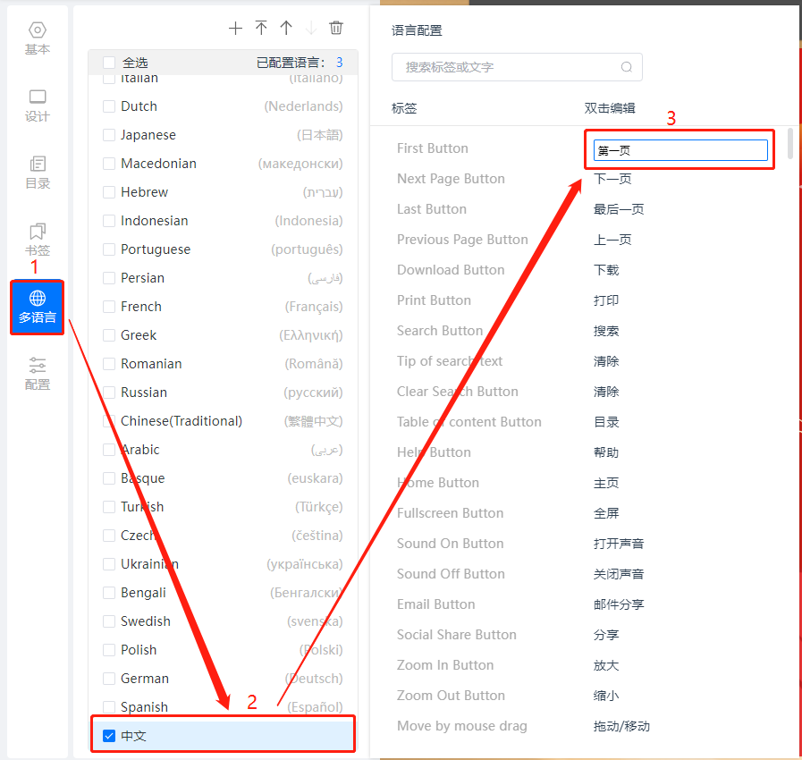 如何設(shè)置云展網(wǎng)書本按鈕提示語言?