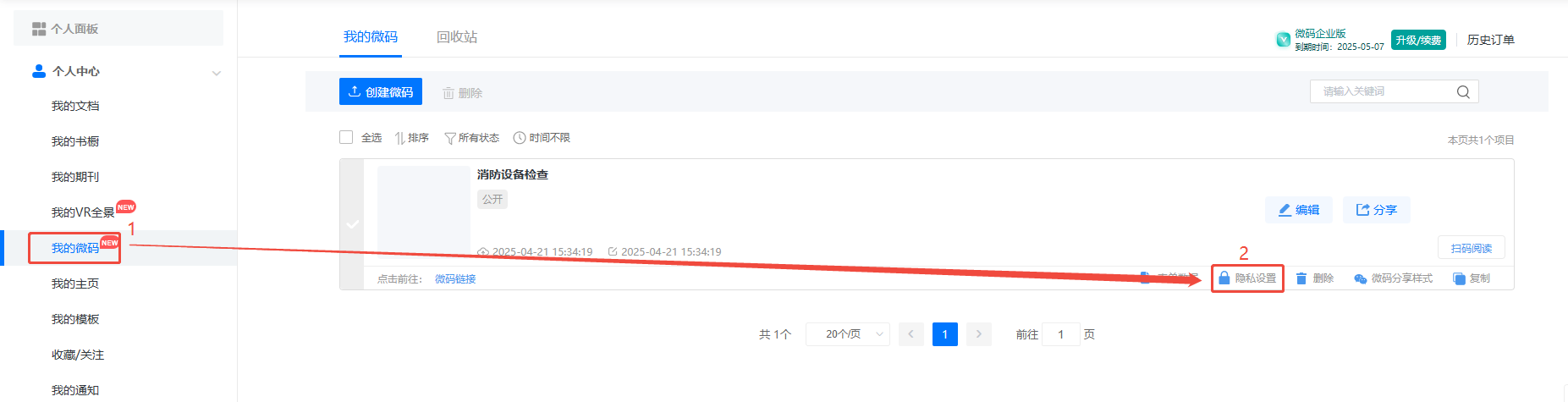 點擊【我的微碼】,選擇需要設(shè)置的微碼,點擊【隱私設(shè)置】,打開【指定人員查看】。