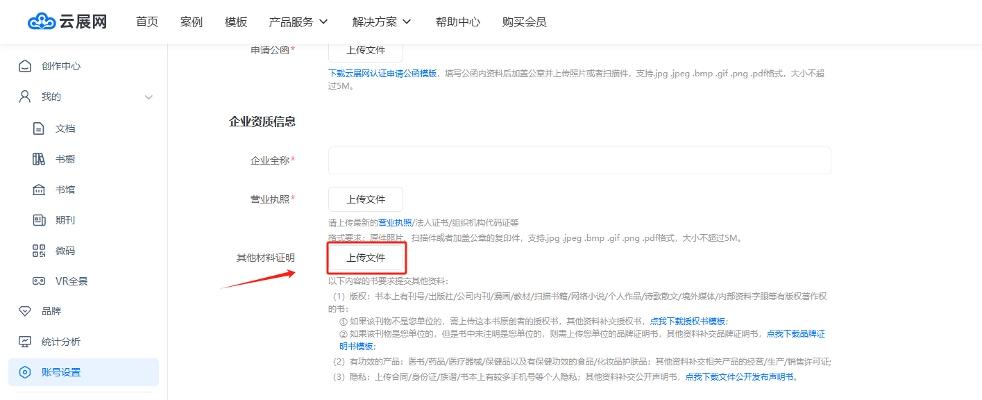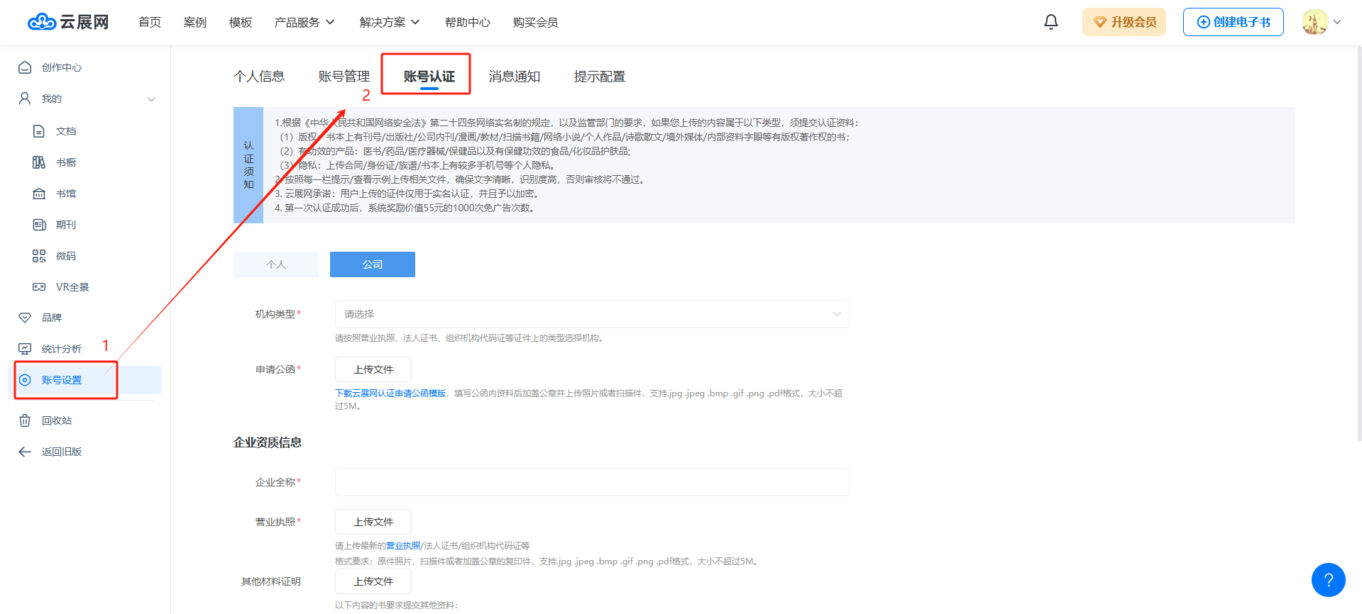 電腦登錄云展網(wǎng)網(wǎng)站,登錄您的賬號,點擊【賬號設(shè)置】,點擊【賬號認證】打開賬號認證界面