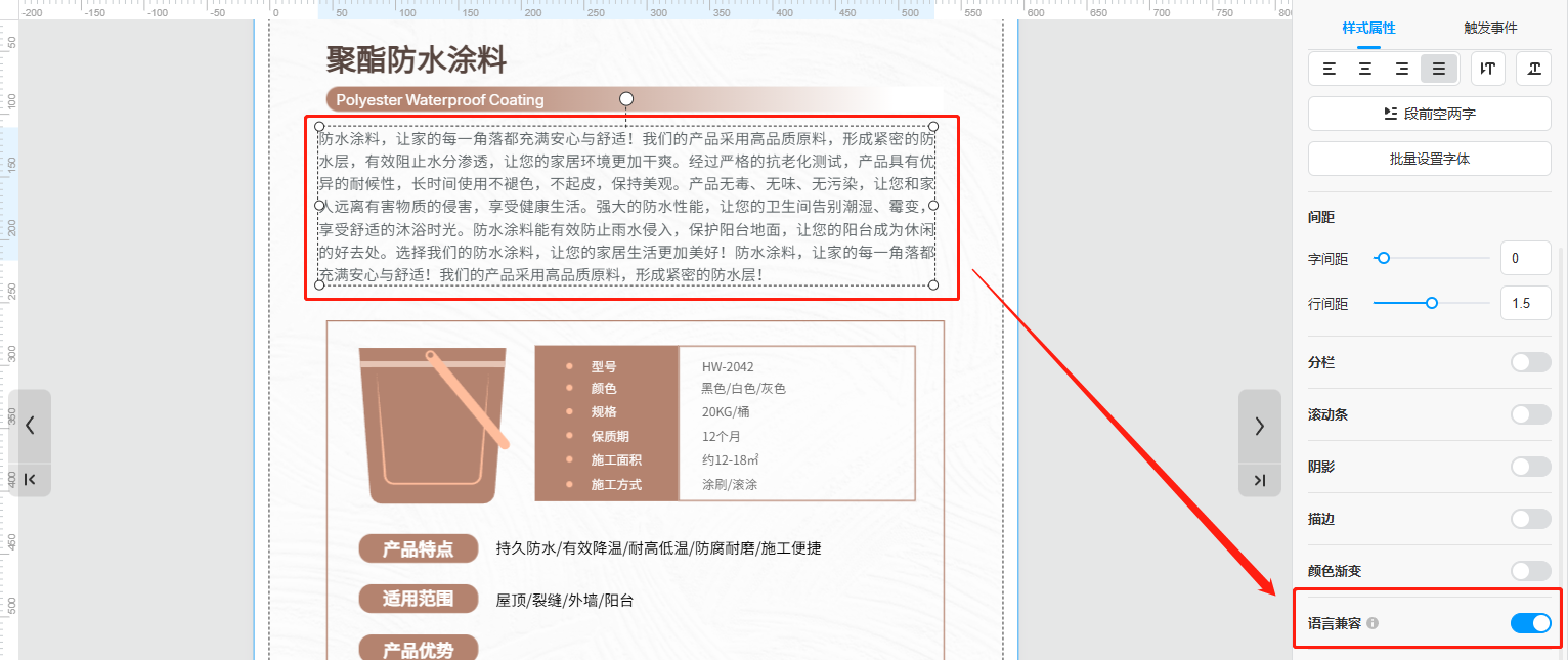 如果文本框中有文字或者標(biāo)點符號顯示異常,可以選中文本框打開【語言兼容】,就會恢復(fù)正常。