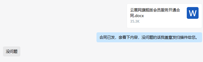 客服生成合同后,會(huì)將生成的合同發(fā)給甲方確認(rèn),如甲方確認(rèn)合同沒問題,客服會(huì)打印蓋章發(fā)掃描件給甲方。