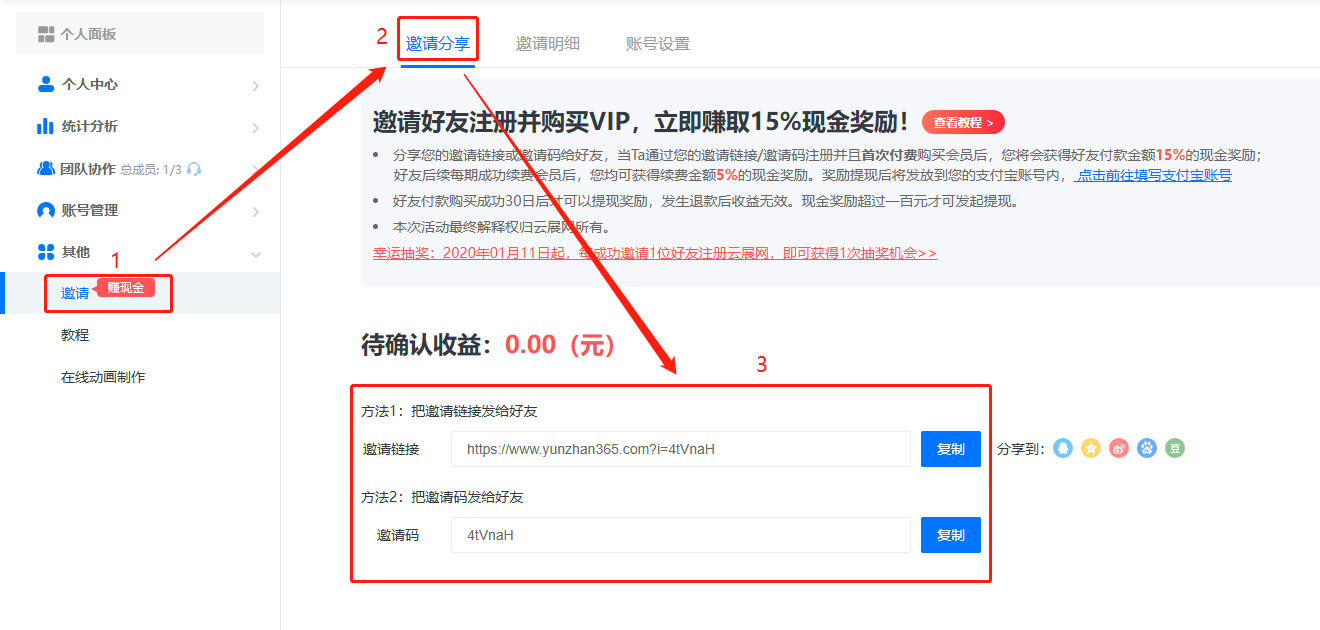 如何用云展網(wǎng)邀請(qǐng)好友購(gòu)買(mǎi)會(huì)員賺現(xiàn)金獎(jiǎng)勵(lì)?只需要分享您的邀請(qǐng)鏈接或邀請(qǐng)碼給好友,當(dāng)好友通過(guò)您的邀請(qǐng)鏈接或者邀請(qǐng)碼注冊(cè),并且購(gòu)買(mǎi)付費(fèi)會(huì)員后,您將獲得相應(yīng)的現(xiàn)金獎(jiǎng)勵(lì)。