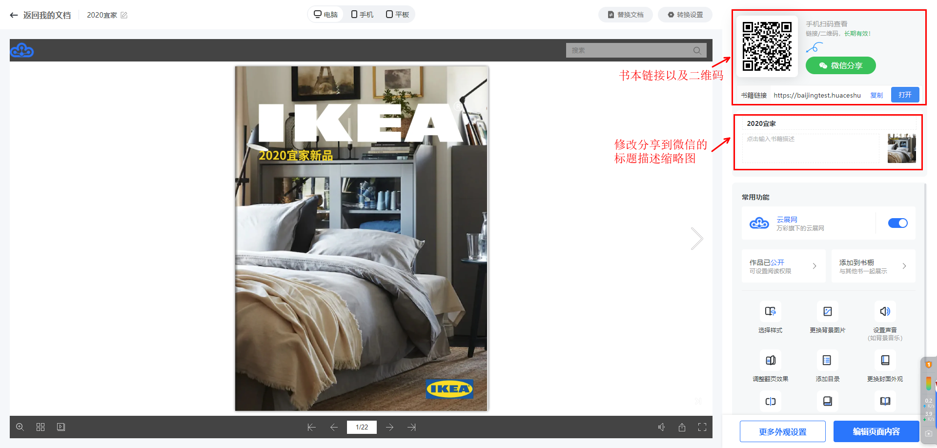 上傳成功以后生成的書本鏈接以及二維碼可以用于網(wǎng)站,微信(包含朋友圈,好友,微信群,公眾號),QQ郵箱等發(fā)布。