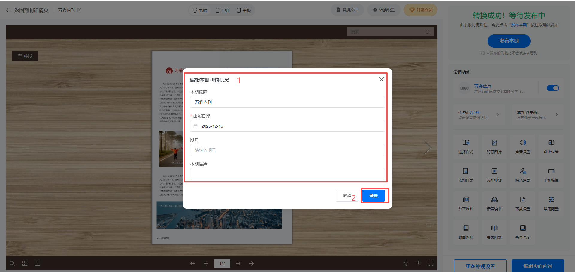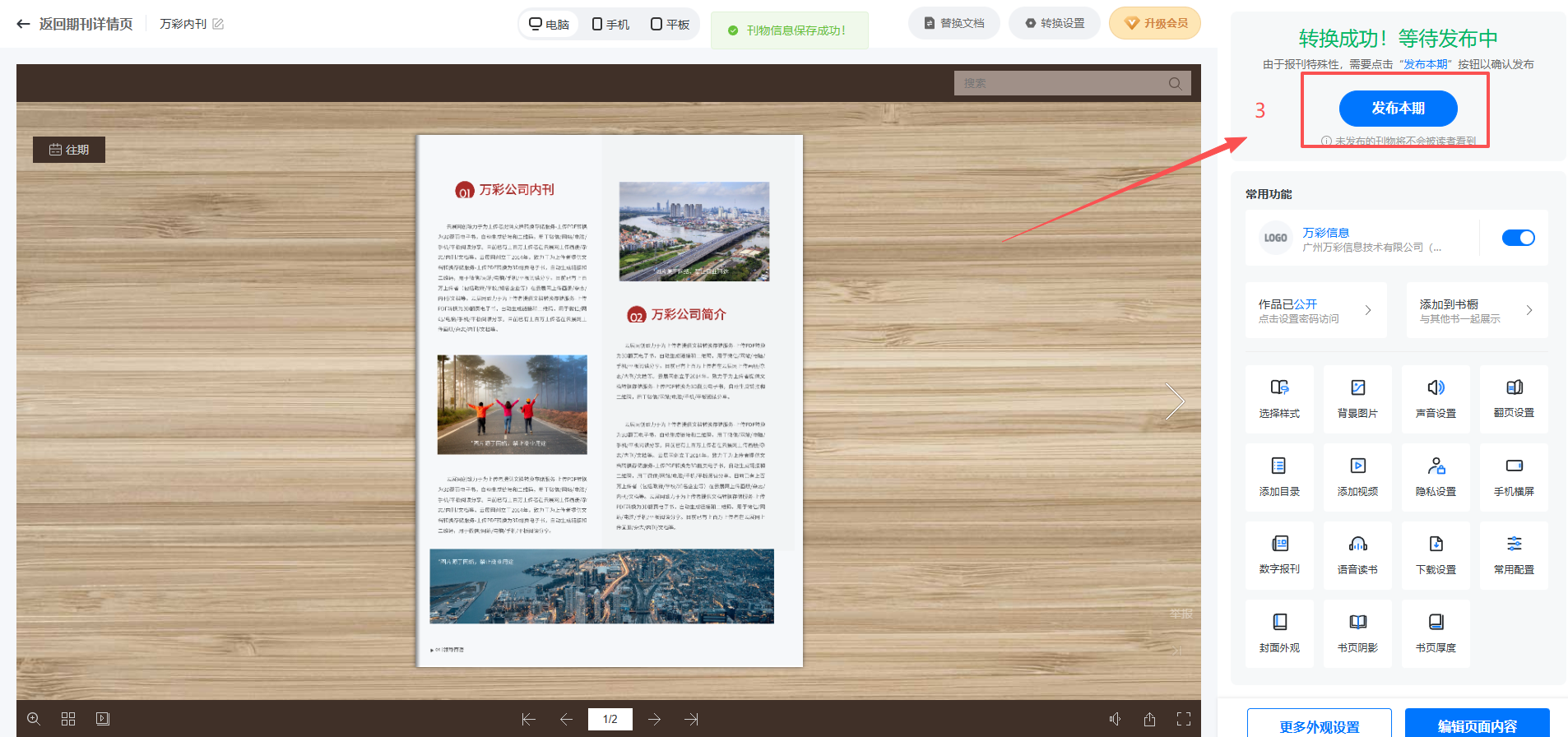 (3)設置刊物信息,設置好后點擊【發(fā)布本期】發(fā)布。