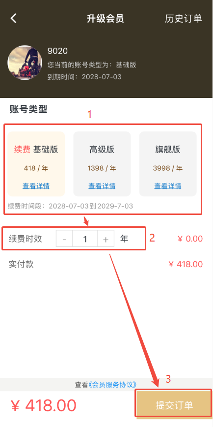 選擇需要購買的會員版本,輸入購買時效,付款金額確認(rèn)無誤后,點(diǎn)擊【提交訂單】,提交之后點(diǎn)擊【確認(rèn)支付】付款即可,付款后系統(tǒng)會自動開通,如需對公轉(zhuǎn)賬需要先聯(lián)系客服把付款單位名稱跟云展網(wǎng)登錄手機(jī)號發(fā)給客服備注,到賬后開通。