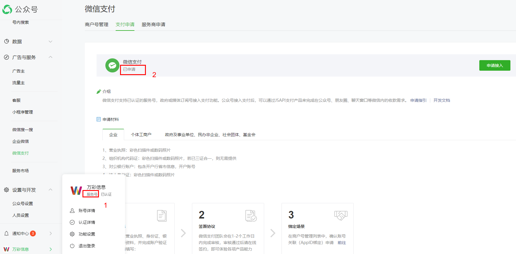 注意:這種方法要求您的公眾號(hào)必須是服務(wù)號(hào),并且開通了“微信支付”功能,缺一不可。