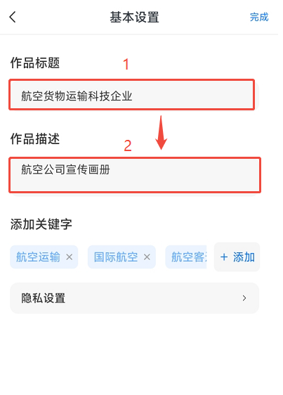 (2)分別輸入【作品標題】和【作品描述】后即可自動保存。