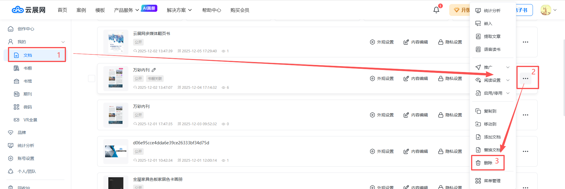 在【文檔】頁面,選擇需刪除的電子書,點(diǎn)擊【…】,選擇【刪除】即可。