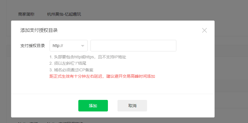 2)設(shè)置支付配置:JSAPI支付,點擊添加支付授權(quán)目錄