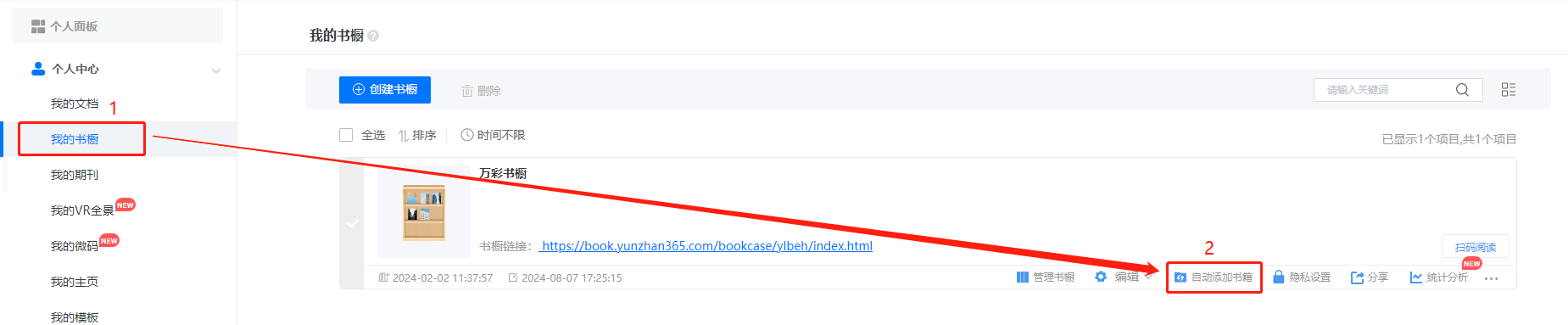 注意:設(shè)置該功能后新上傳的書才會自動添加到書櫥,文件夾中已存在的書籍不會被添加到書櫥中。