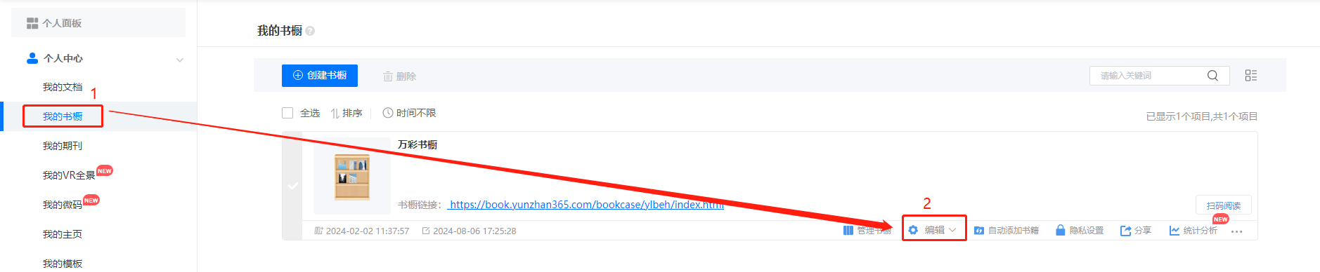 (1)點(diǎn)擊【我的書櫥】找到對應(yīng)書櫥,點(diǎn)擊【編輯】,進(jìn)入編輯界面。