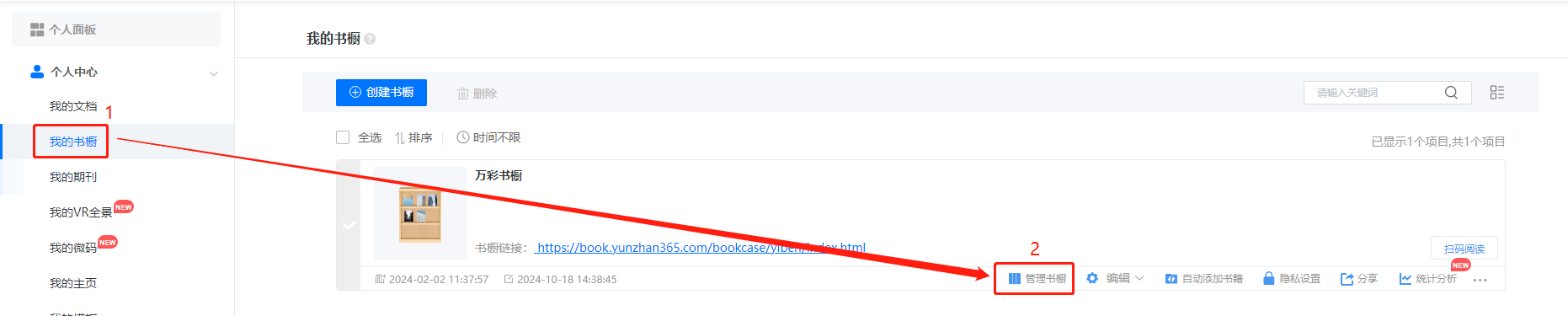 點(diǎn)擊【我的書櫥】,再點(diǎn)擊【管理書櫥】,進(jìn)入管理書櫥界面。