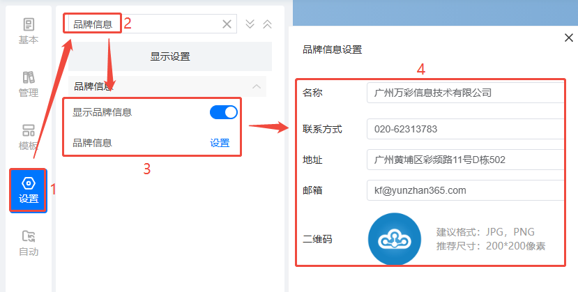2、設(shè)置品牌信息