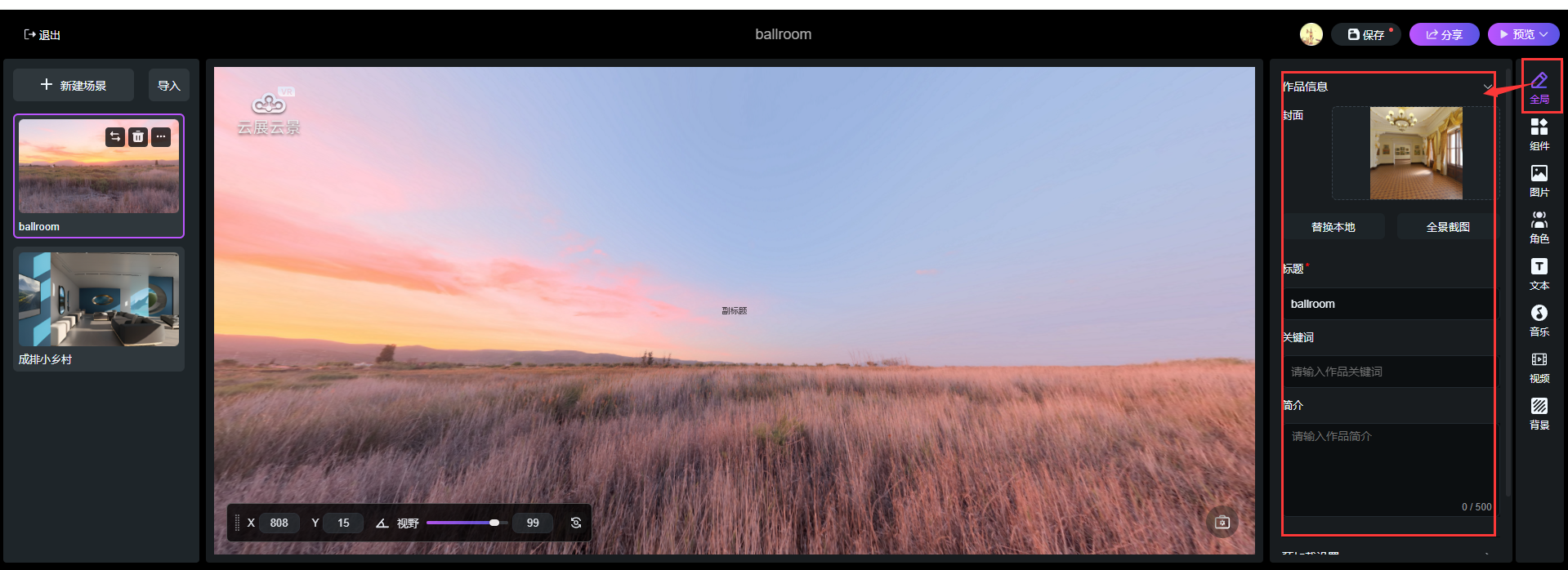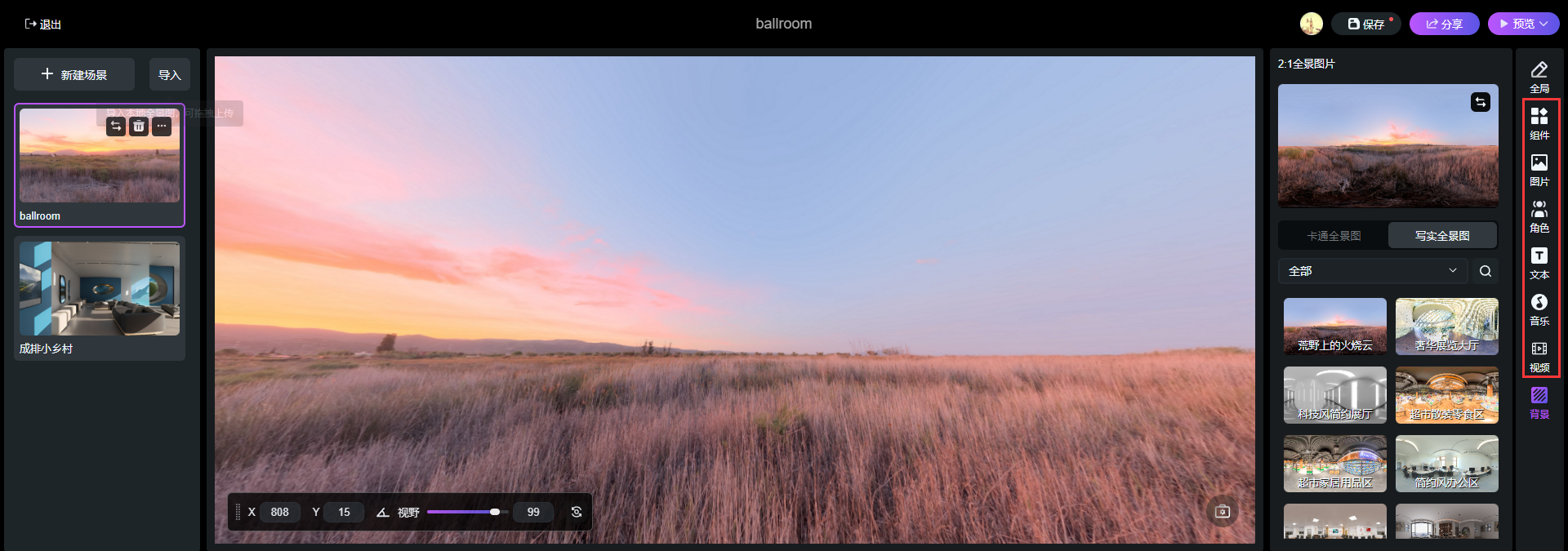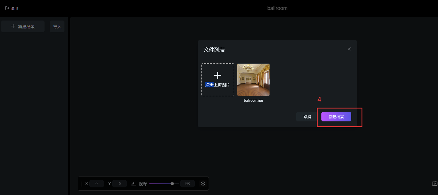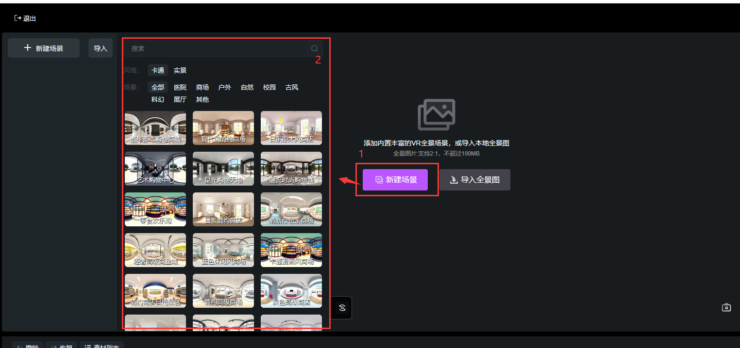 點擊【新建場景】添加內(nèi)置豐富的VR全景場景