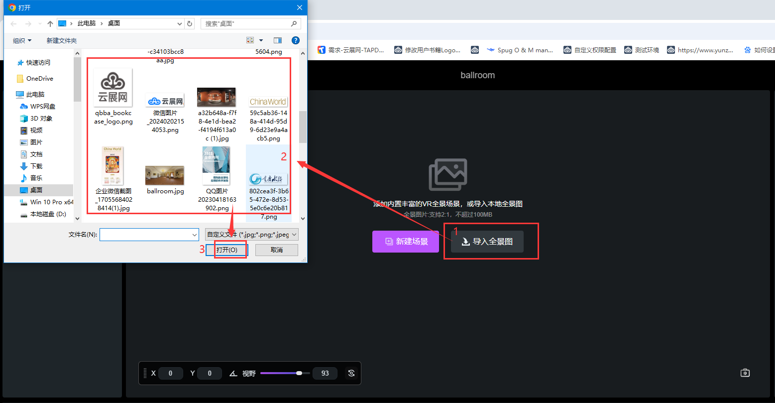 點擊【導(dǎo)入全景圖】,上傳自己本地的全景圖轉(zhuǎn)換成在線的全景空間