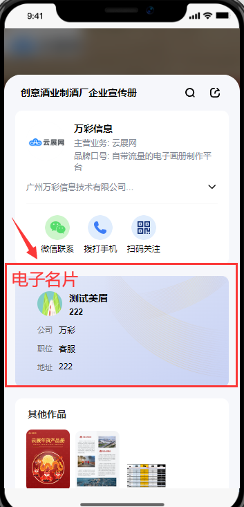 電子名片是指添加您的logo圖、姓名、職位、微信號(hào),電話等信息形成電子名片,展示在相關(guān)內(nèi)容面板上,可以快速地與潛在客戶建立聯(lián)系,提高溝通效率和響應(yīng)速度。
