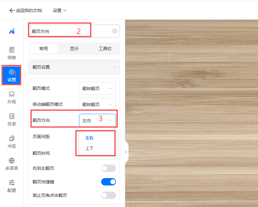 云展網(wǎng)默認的書籍效果都是左右翻頁效果,另外可以自定義選擇上下翻頁以及左右滑頁效果。