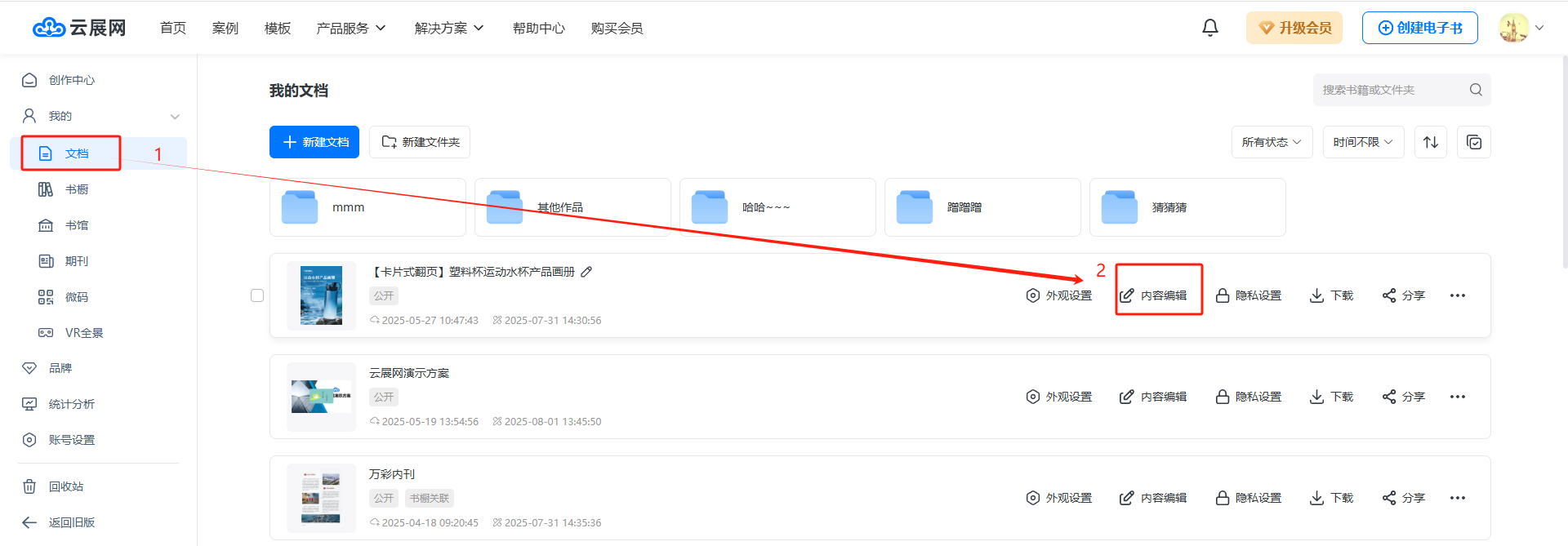 點(diǎn)進(jìn)【文檔】,選擇需要替換頁(yè)面的書本,點(diǎn)擊【內(nèi)容編輯】。