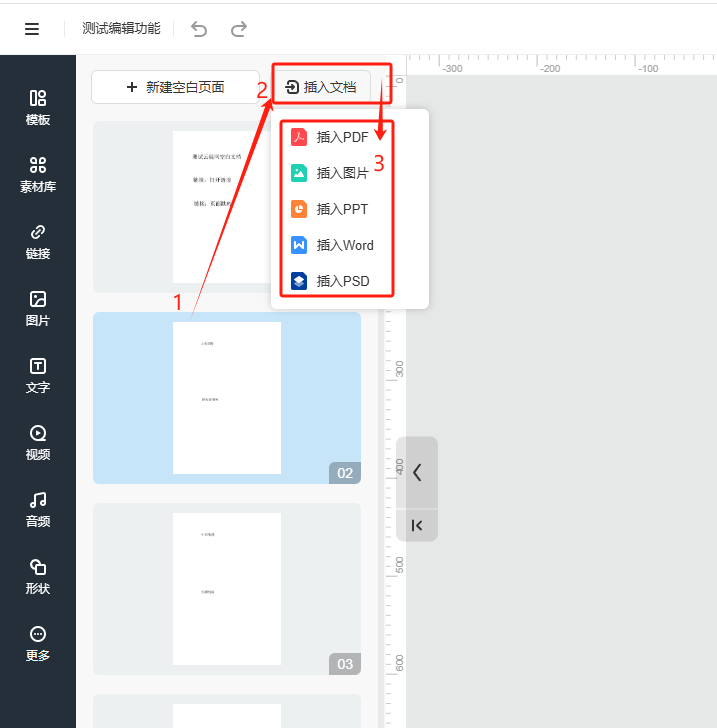 成功插入新文件之后,將鼠標(biāo)移動(dòng)到左邊舊頁(yè)面的縮略圖上點(diǎn)擊垃圾桶圖標(biāo),刪除舊頁(yè)面。